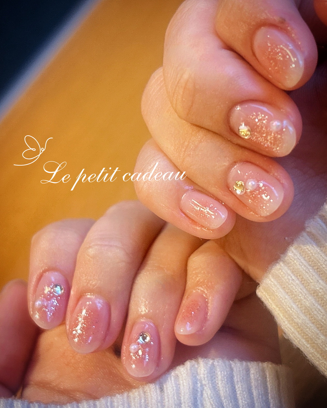 ピンクとラメの優しい大人ネイルෆ ̖́-