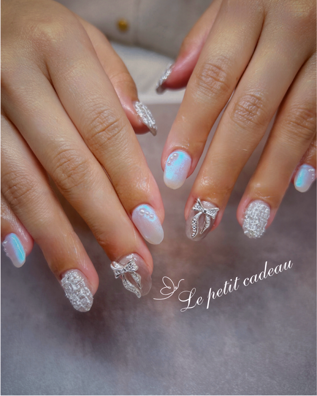 大きなリボンがとっても可愛いウィンターネイルです☃️